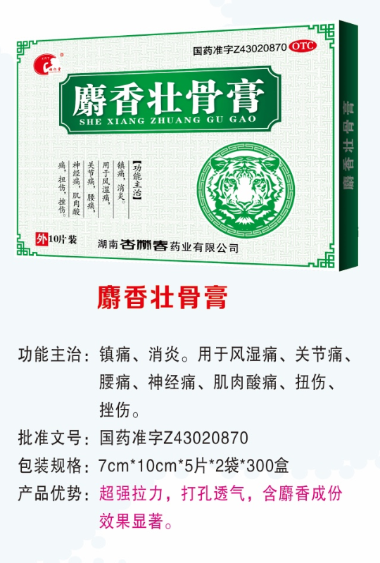 成份 | 八角茴香、山柰、生川乌、生草乌、麻黄、白芷、苍术、当归、干姜、麝香、薄荷脑、樟脑、冰片、豹骨、水杨酸甲酯、盐酸苯海拉明、硫酸软骨素。辅料:橡胶、松香等。 |